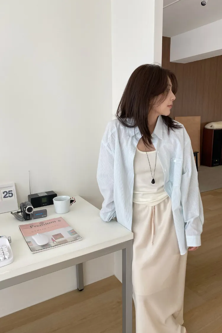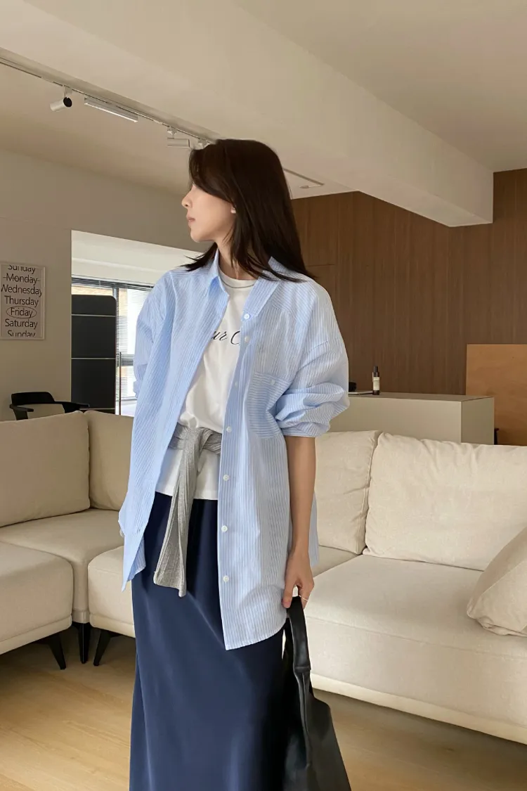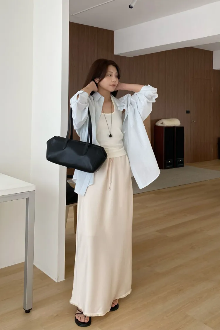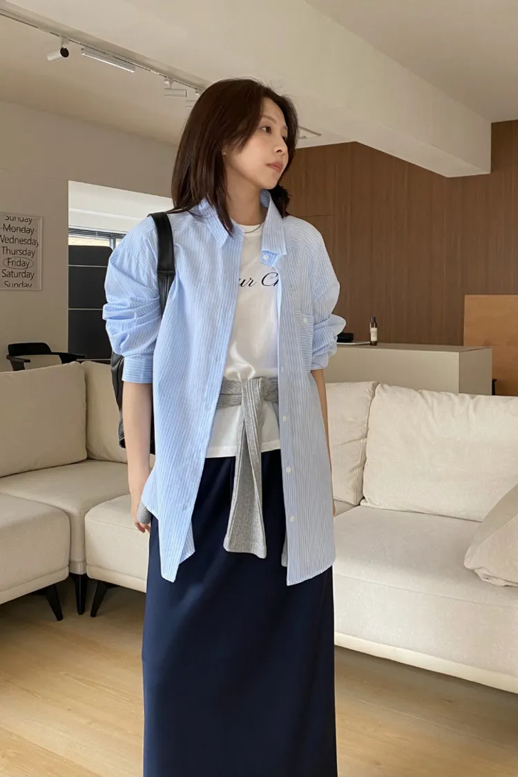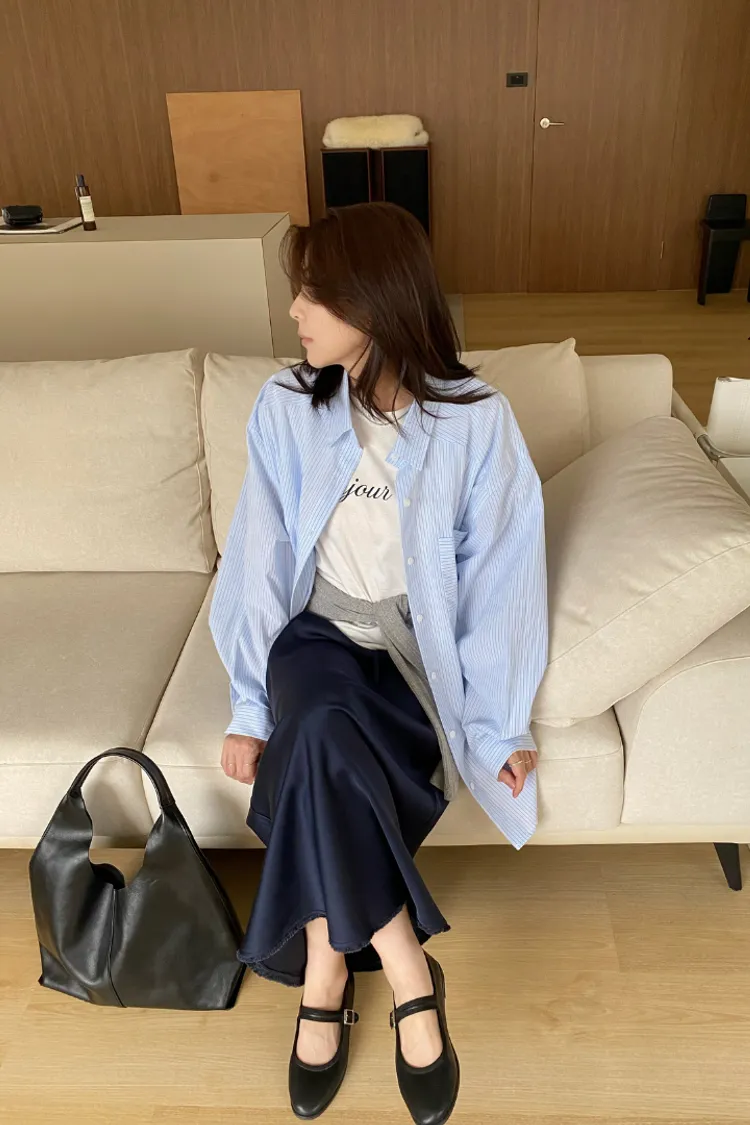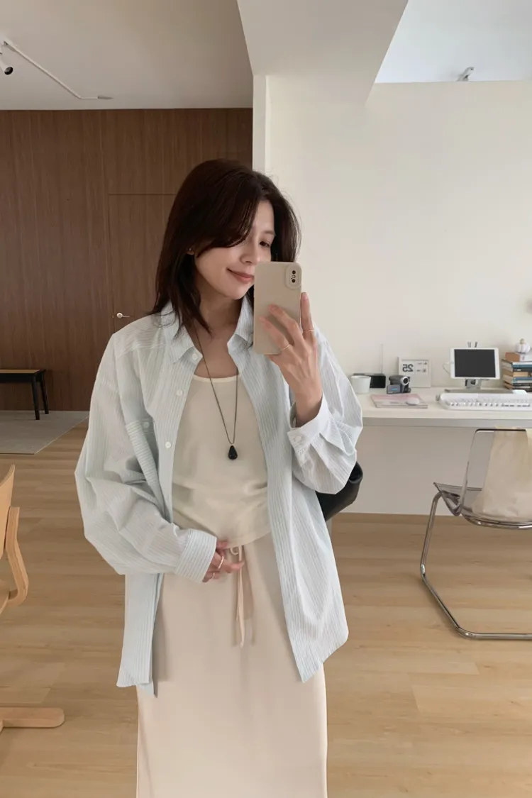 說明:稍微偏oversize版型,但因為布料薄透、有空氣感,