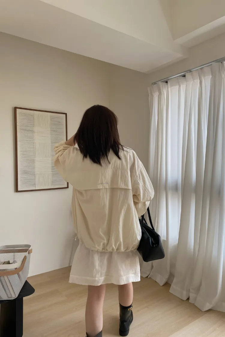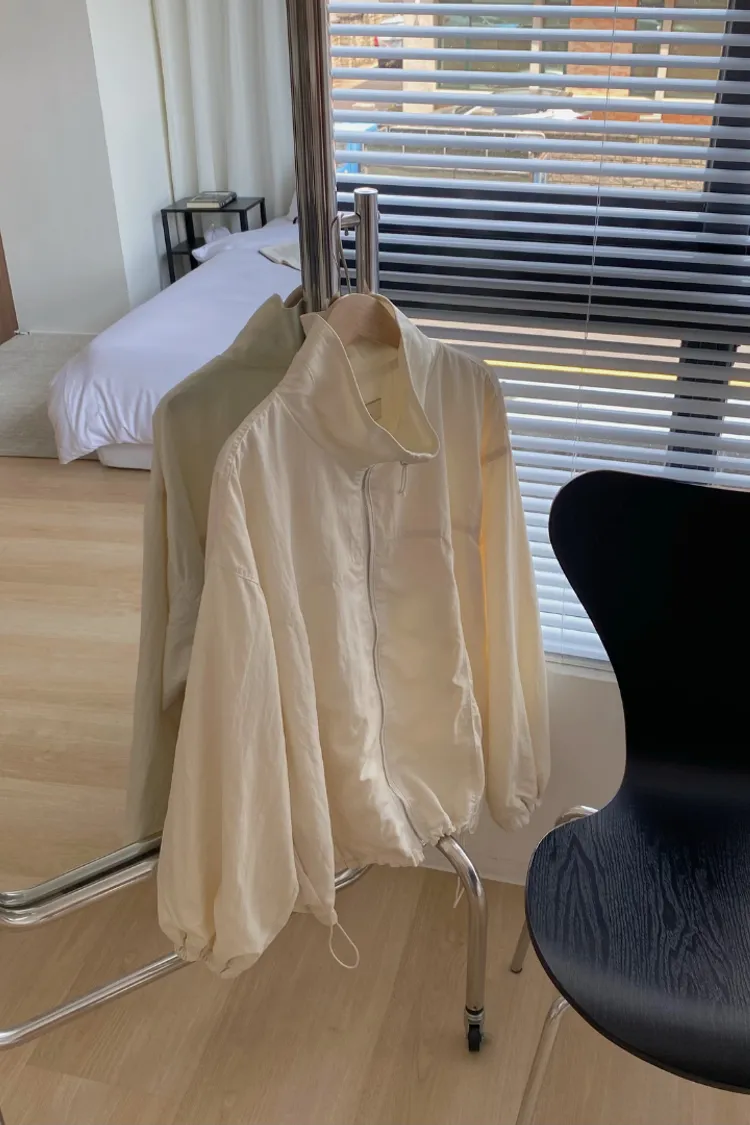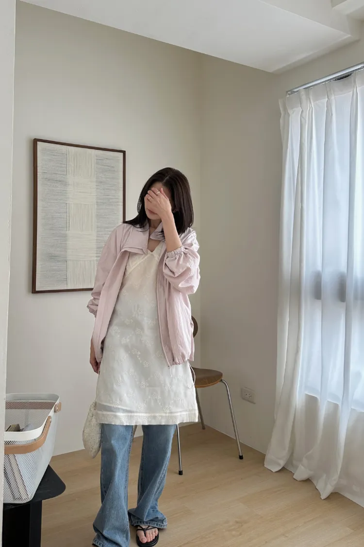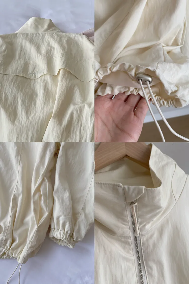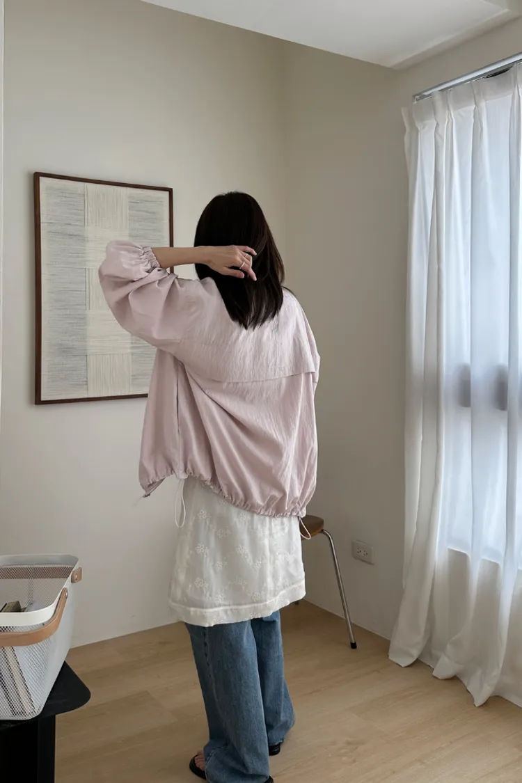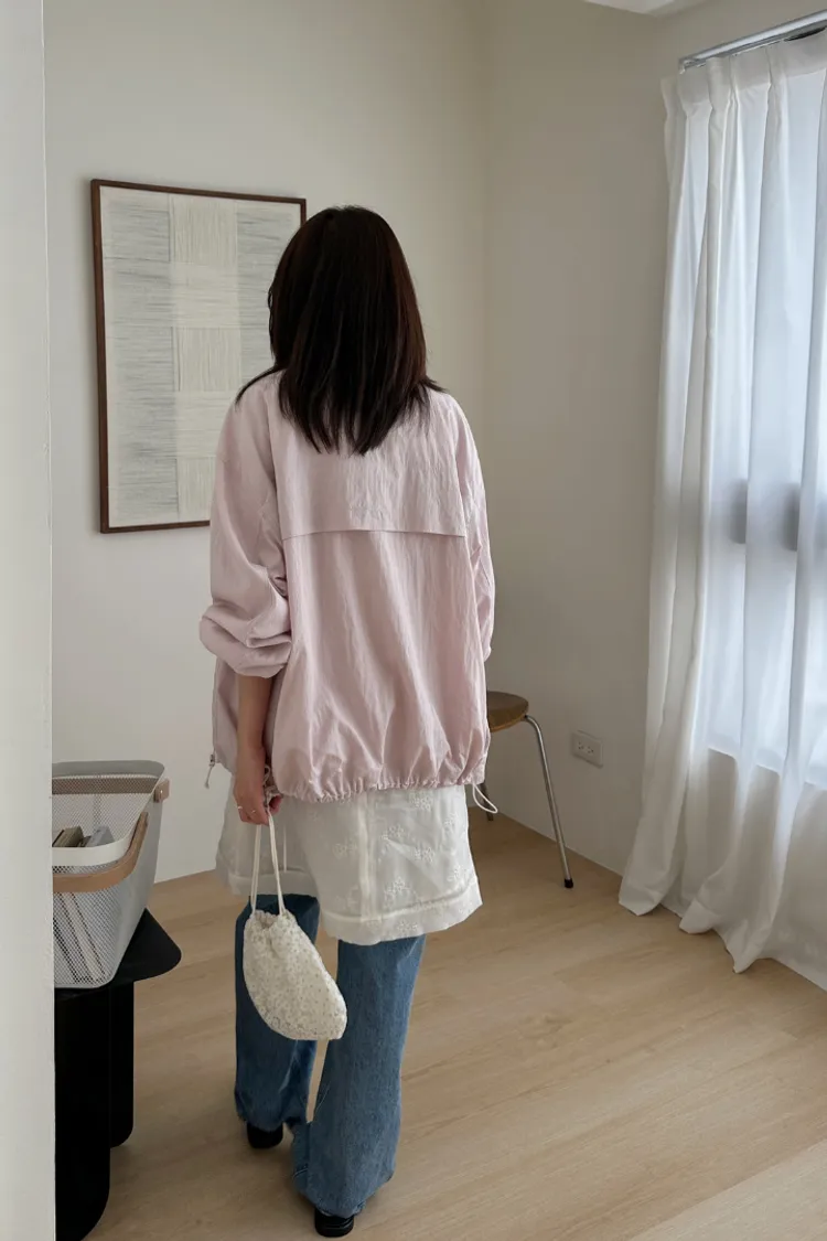 布料很輕,下擺抽繩收緊可以調整比例,冷氣房或機車族防曬必備。