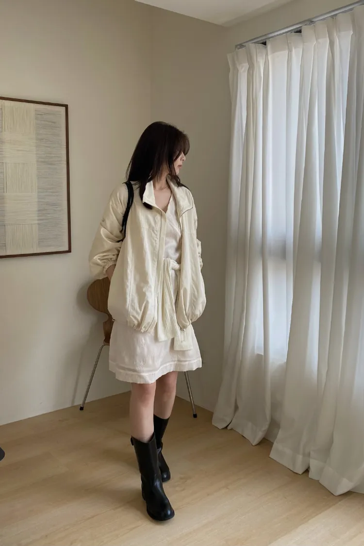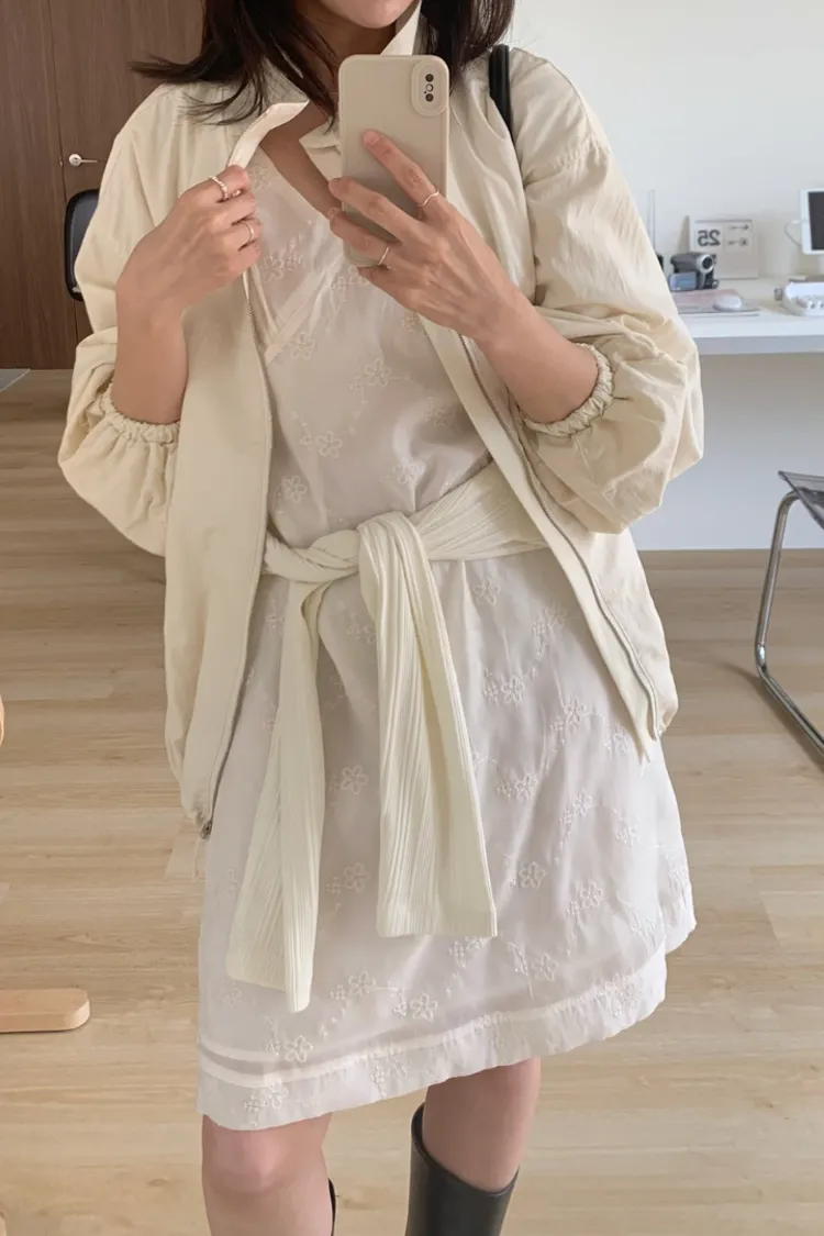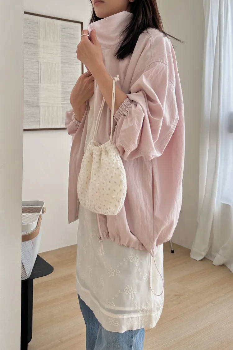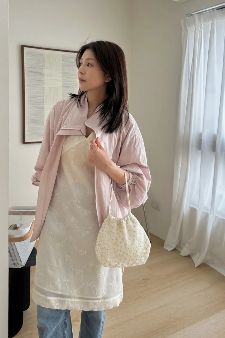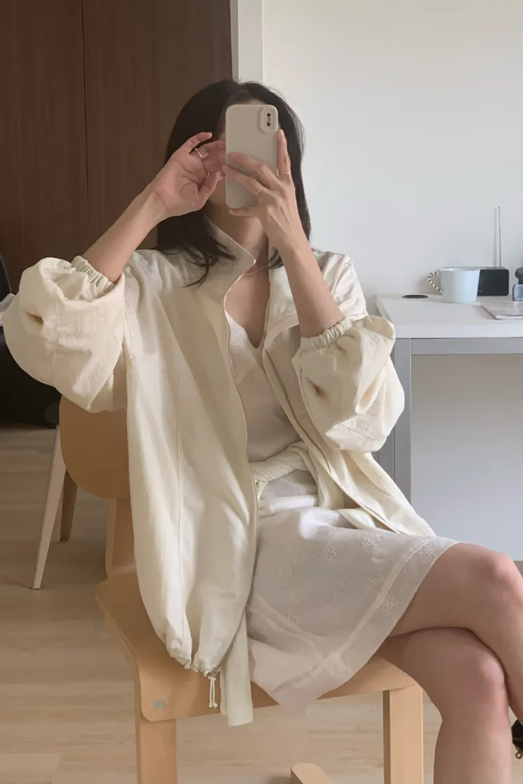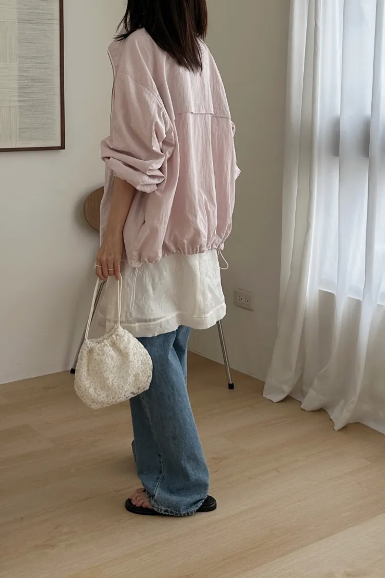 布料很輕,下擺抽繩收緊可以調整比例,冷氣房或機車族防曬必備。